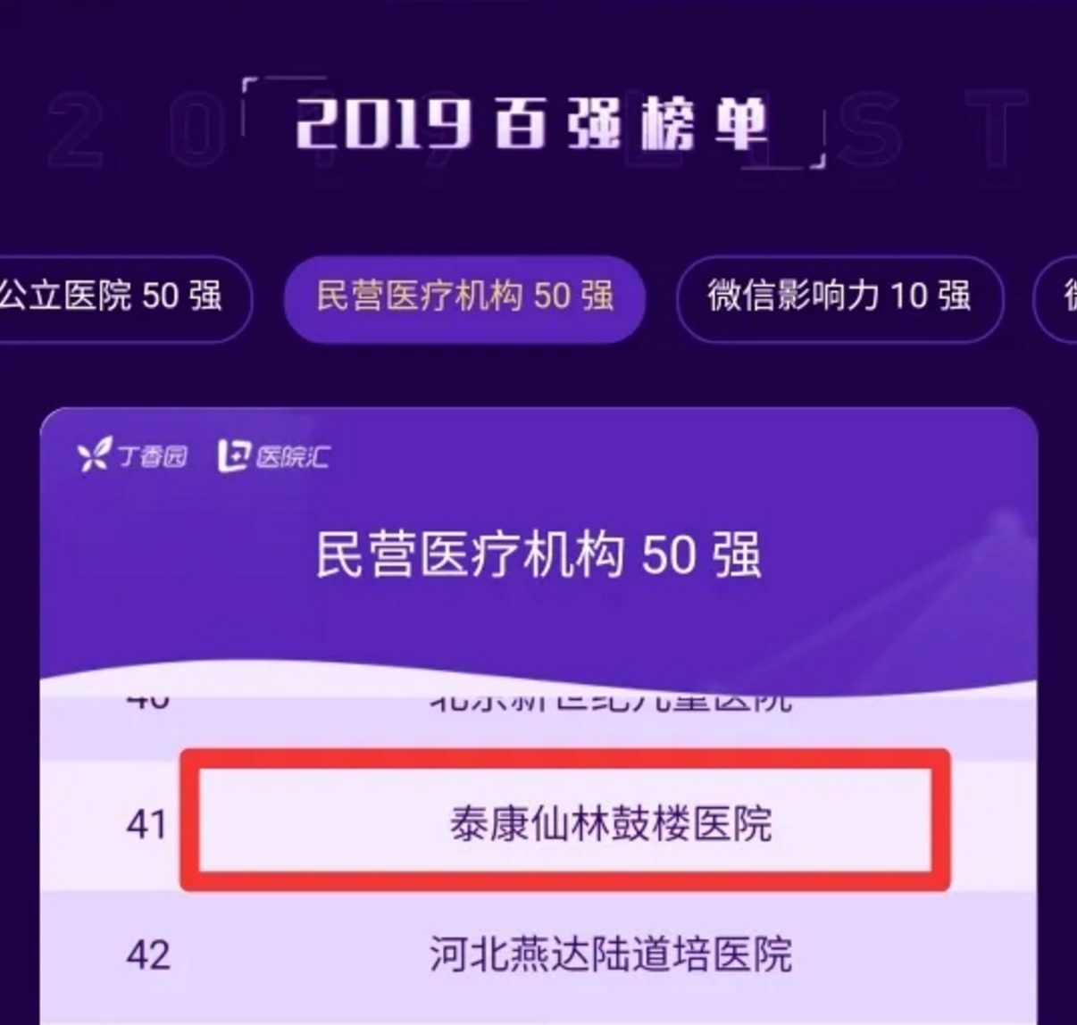 Ebpay仙林鼓楼医院连读第二年入围中国民营医疗组织50强。